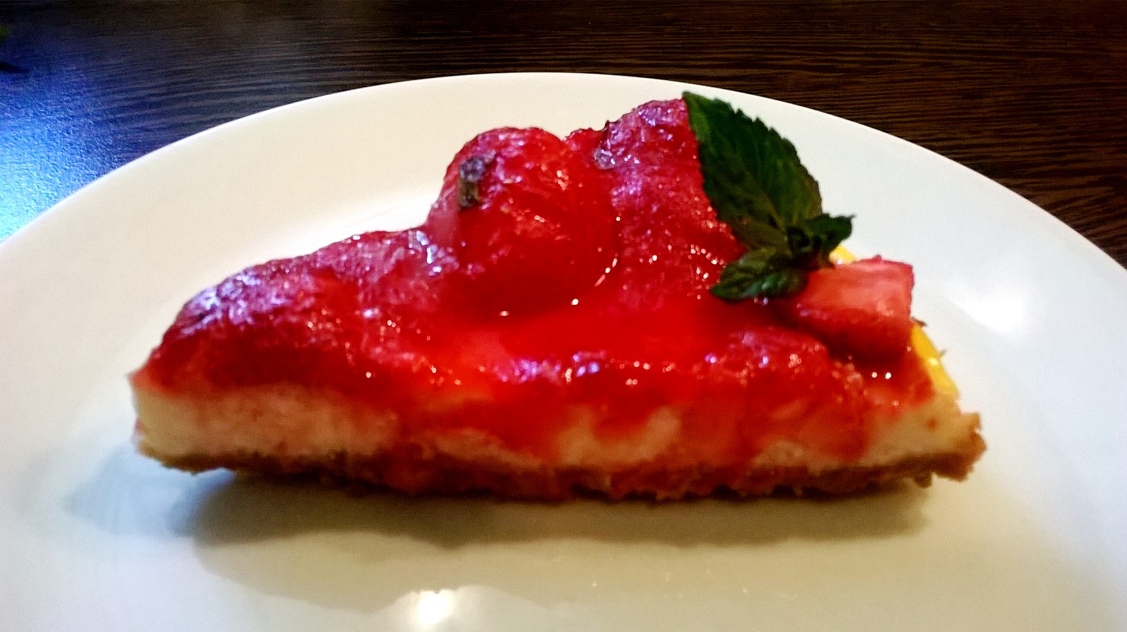 Ez alatt elkészítjük a krémet. Kanálall simára keverjük a szobahőmérsékletű ricottát, mascarponét, natrújoghurtot, xilitet, vaniliát és a reszelt citromhéjat. Ezt követően egyesével a tojásokat is belekeverjük a krémbe, majd végül két teáskanál utifűmaghéjat. A krémet ráöntjük a keksz tetejére és 120°C-on kb. 30 percig sütjük. Mikor megsült, nyitott sütőajtónál kicsit hűlni hagyjuk. Ez alatt az epreket megtisztítjuk, félbevágjuk, hozzákeverjük az aprított mentaleveleket, 1 teáskanál utifűmaghéjat és pár percig főzzük őket, majd ráhelyezzük a torta tetejére. Miután kihűlt, hűtőben pihentetjük néhány órát. Friss mentalevéllel díszítve tálaljuk.