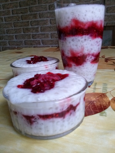 A tápióka gyöngyöket 20 percre háromszoros mennyiségű vízbe áztatjuk. (Ez a lépés a nagy szemű gyöngyök használatánál különösen fontos.) Majd leszűrjük és forró tejben folytonos kevergetés mellet kocsonyás állagúra sűrítjük. A puding sűrűségű masszához hozzáadjuk a vaníliarúd kikapart belsejét és ízlés szerint édesítjük. Majd poharakba szedjük és friss gyümölcsökkel tálaljuk.