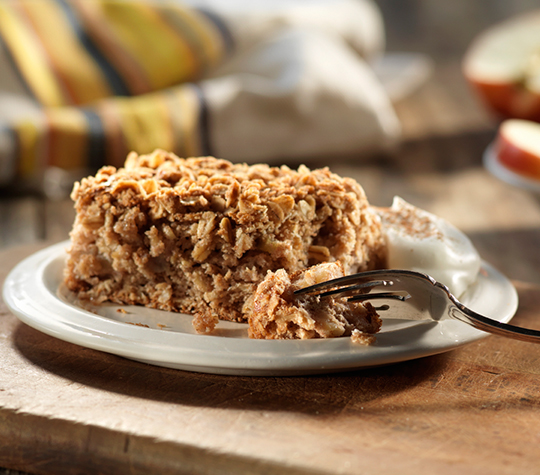 Az almákat megmossuk és nagy lyukú reszelőn lereszeljük a héjával együtt. Kézzel összedolgozzuk a zabpehellyel, a durvára vágott mandulával és az olvasztott vajjal. Fahéjjal és egy csipet sóval ízesítjük. Sütőpapírral bélelt tepsiben egyenletesen eloszlatjuk a masszát. 180 °C-ra előmelegített sütőben 30 percen keresztül sütjük. A tepsiben hagyjuk kihűlni, majd kockákra vágjuk.
